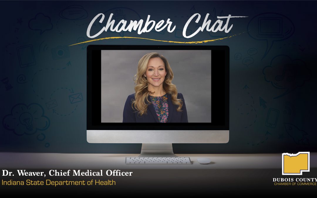 The Dubois County Chamber of Commerce plans to host a Virtual Chamber Chat on Tuesday, August 25, at 8 am EST. Dr. Weaver, the Chief Medical Officer for the Indiana State Department of Health will be joining the Virtual Chamber Chat.